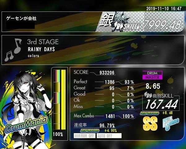少しPerfect率が悪いですが、毎作フルコンしているRAINY DAYSをフルコンしました。
